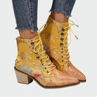 ✨ Motivo Oriental Impressionante: Este padrão roxo e dourado com bordado dourado faz com que as botinhas se destaquem em qualquer ocasião.