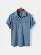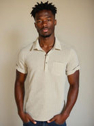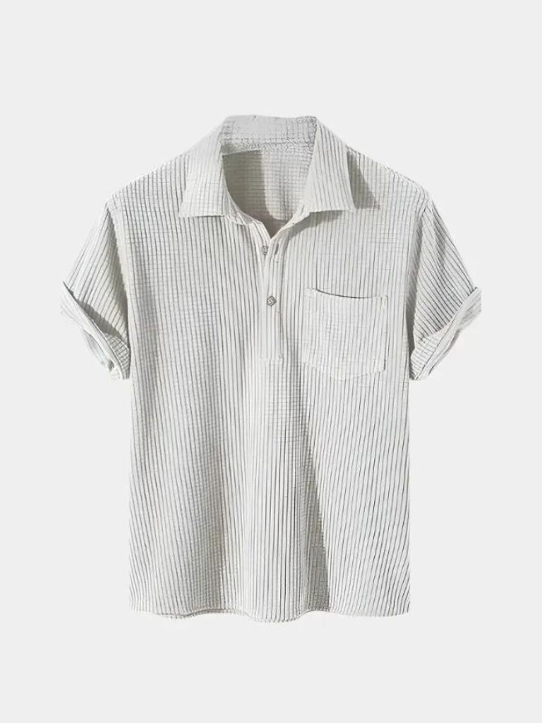 Esta camisa de manga curta texturizada incorpora um estilo refinado e sofisticado. O tecido texturado único acrescenta dimensão e profundidade ao design clássico de manga curta. Eleve o seu guarda-roupa com esta peça luxuosa e faça uma declaração de elegância.