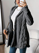 O casaco Sara foi criado para unir estilo intemporal e máximo conforto. Confeccionado em malha suave e flexível, com um corte médio e capuz felpudo, é a peça perfeita para quem procura uma camada prática e refinada em qualquer ocasião. O seu design aberto, aliado a uma silhueta favorecedora, torna-o versátil e fácil de conjugar tanto com coordenados casuais como com looks mais elegantes.