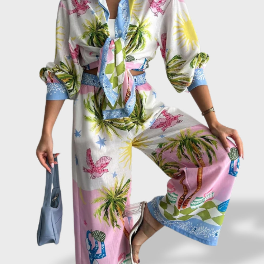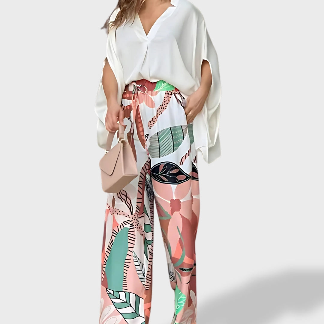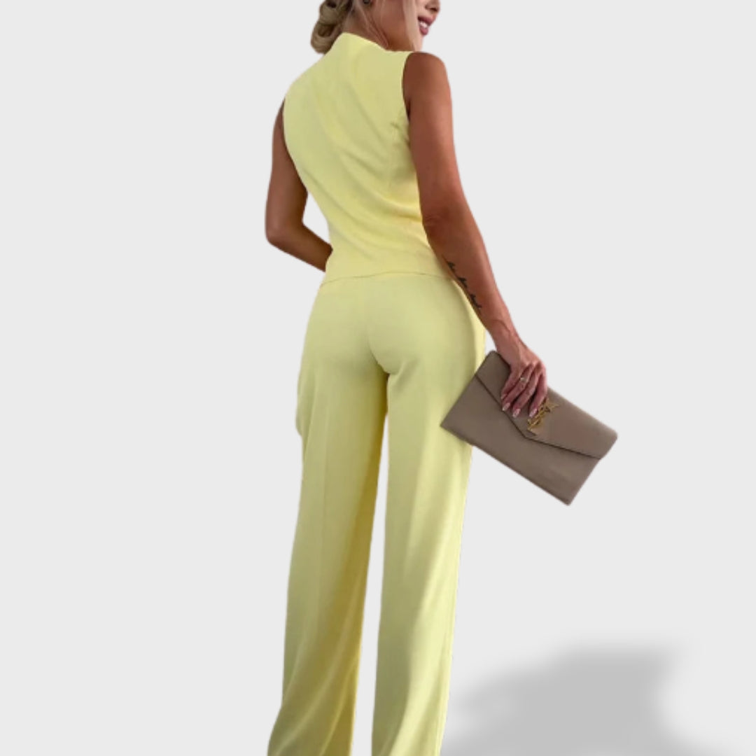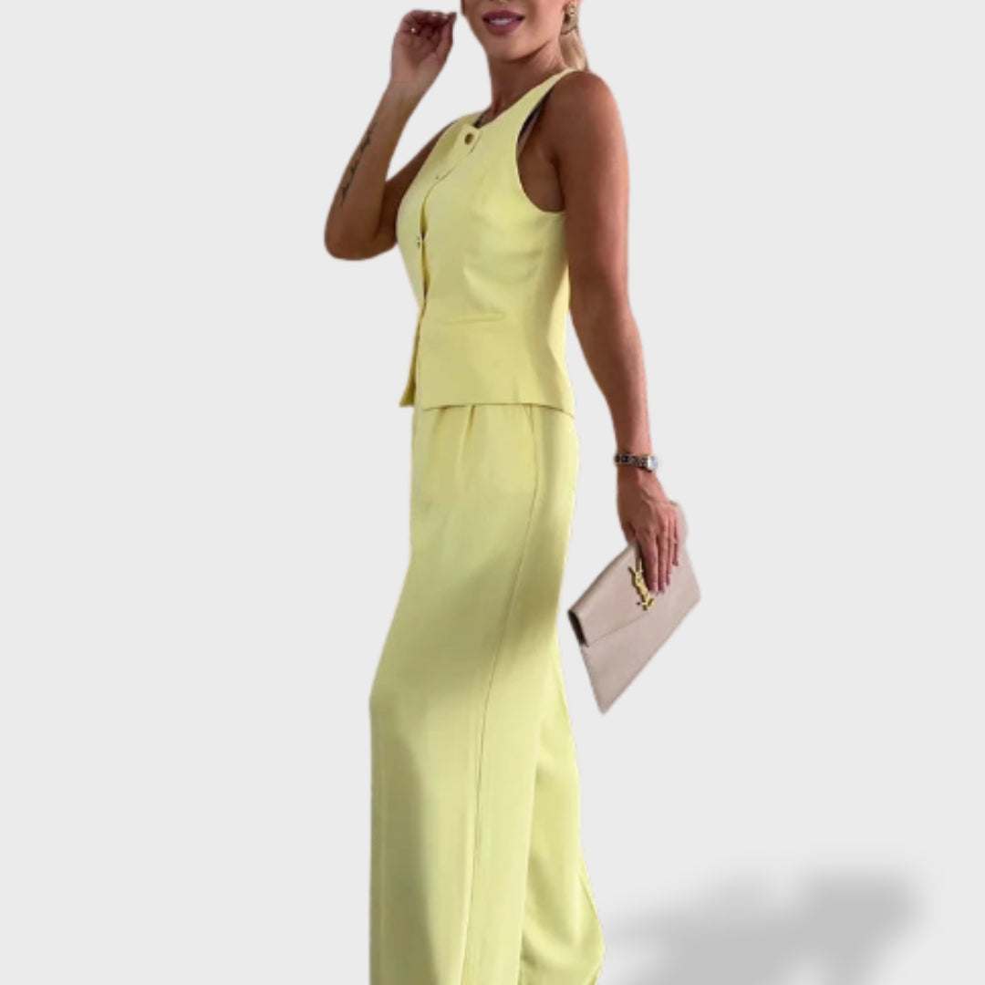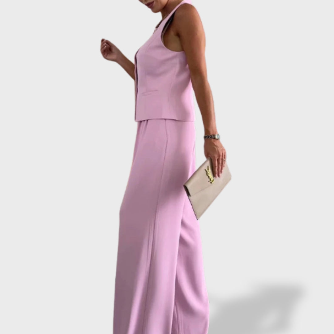 Valéria - Colete com rebordo de pétalas e calças compridas