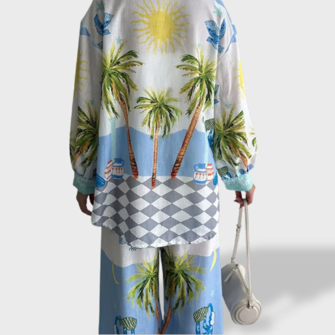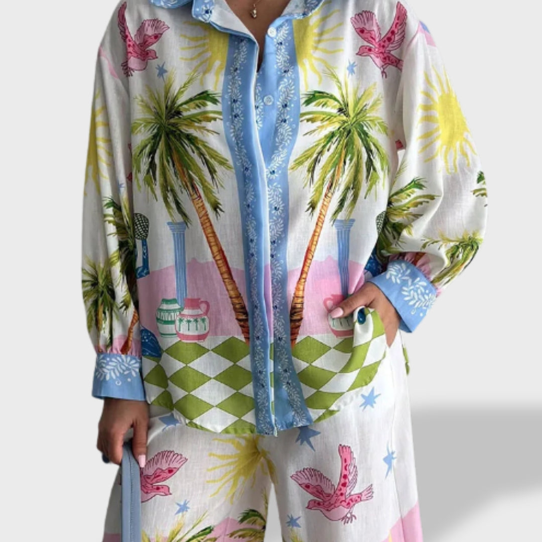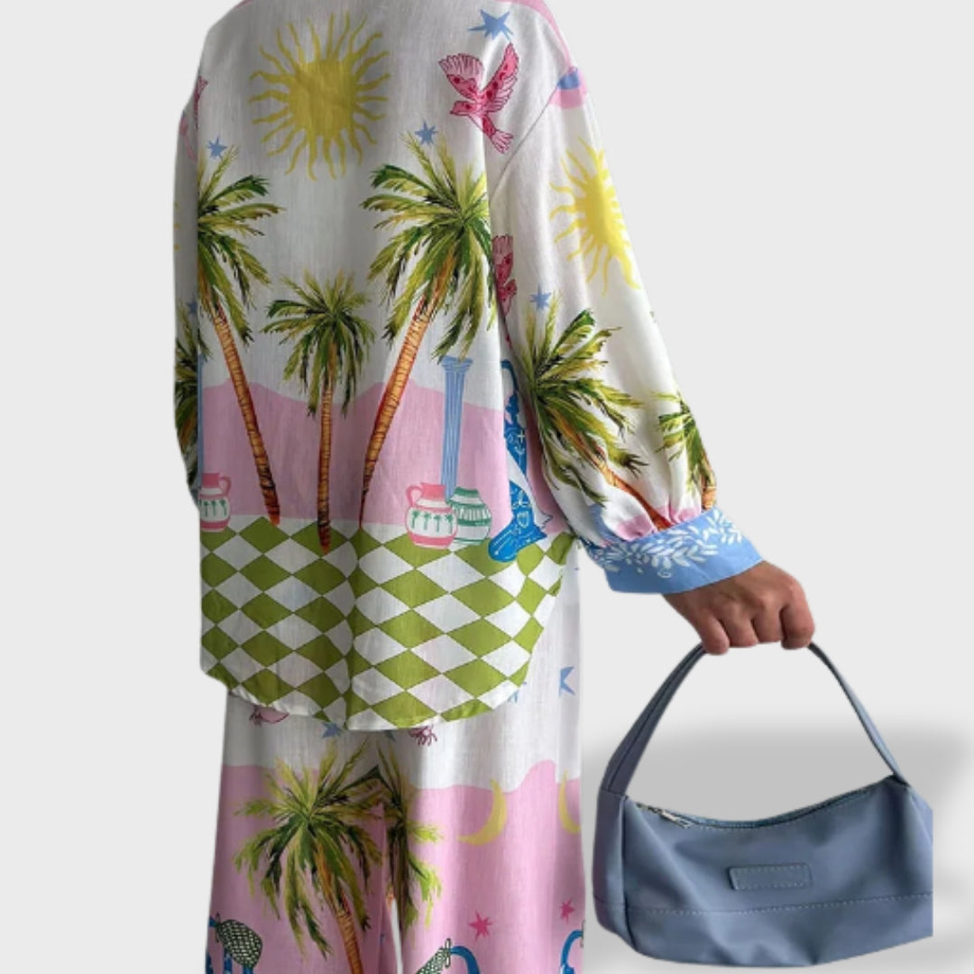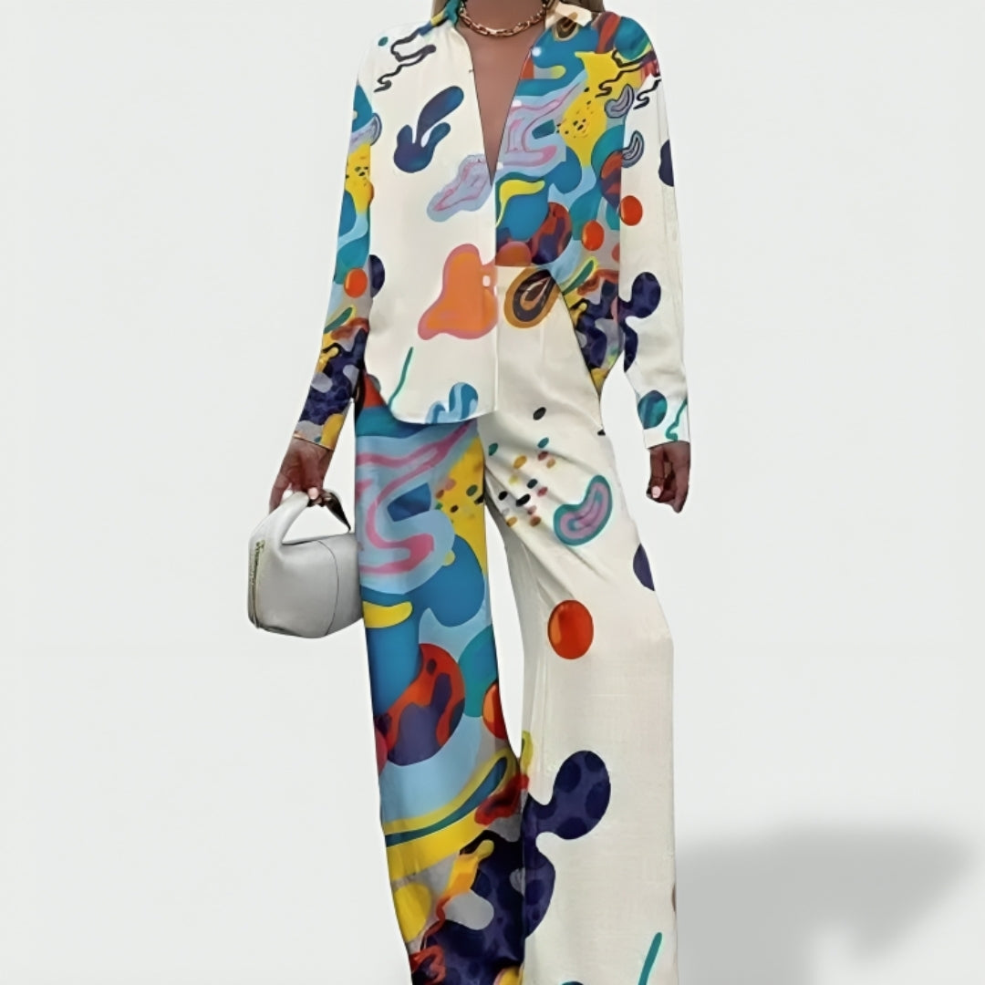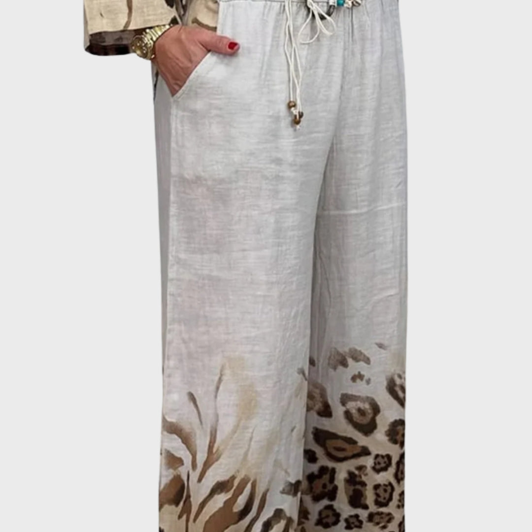 Valéria - Colete com rebordo de pétalas e calças compridas
