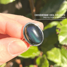 Anel ajustável "O Processo de Cura da Alma" em Obsidiana Olho do Céu e Prata