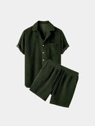 Delicie-se com o conforto e o estilo luxuosos do nosso conjunto minimalista de bombazina, calções e camisa. Fabricado com o melhor tecido de bombazina, este conjunto exala sofisticação e exclusividade. Eleve o seu guarda-roupa com esta adição minimalista e elegante, perfeita para qualquer ocasião.