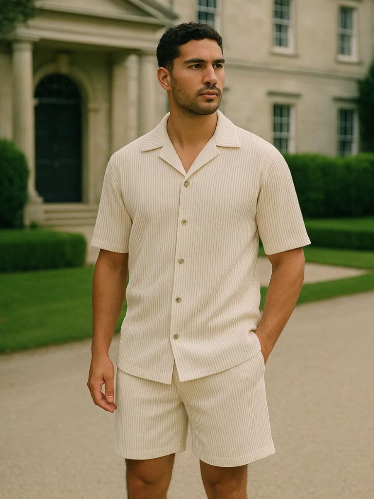 Eleve o seu guarda-roupa com este Conjunto Minimalista em Bombazine. Confecionado com tecido de bombazine premium, este conjunto apresenta um design minimalista com um toque de elegância. Adote a sofisticação e o conforto com a combinação perfeita de calções e camisa. Atualize o seu estilo e destaque-se da multidão.