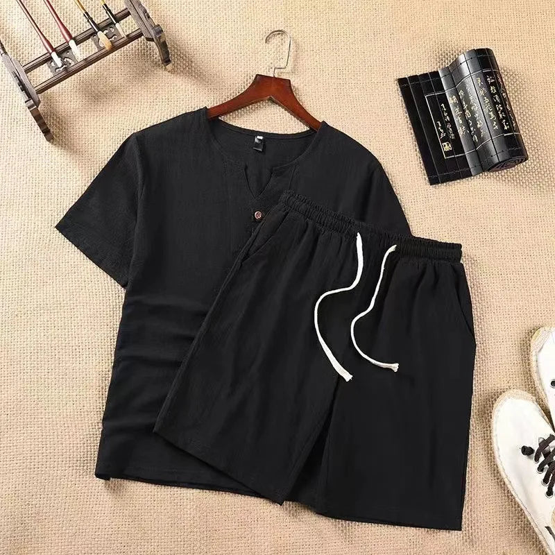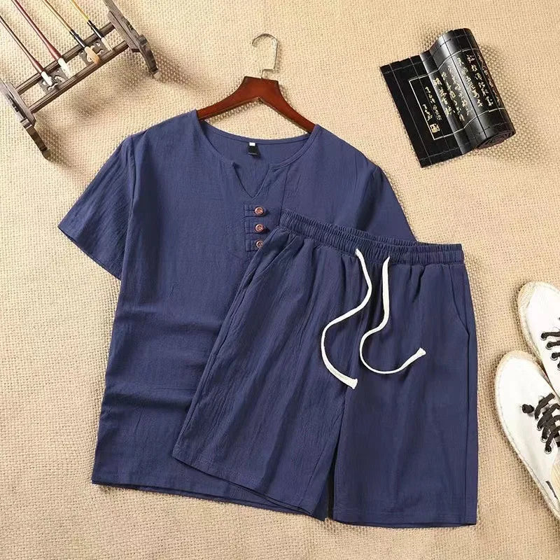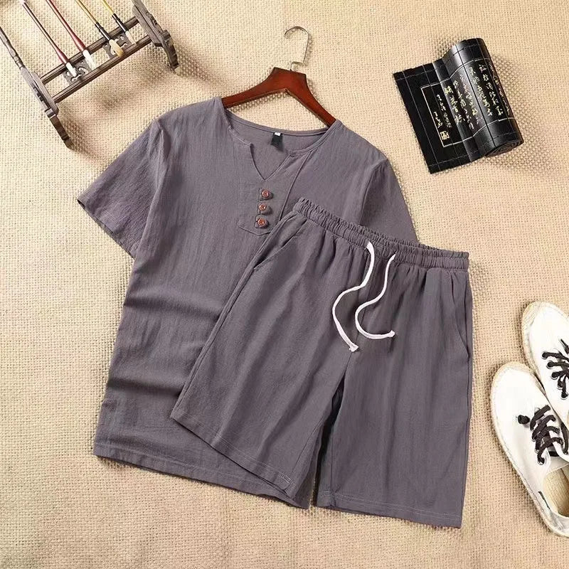 O Conjunto Narciso combina um estilo descontraído com um toque vintage. O conjunto é composto por uma blusa de manga curta com botões decorativos e um par de calções – ambos confecionados num tecido macio e respirável, perfeito para relaxar e para os dias leves de verão.